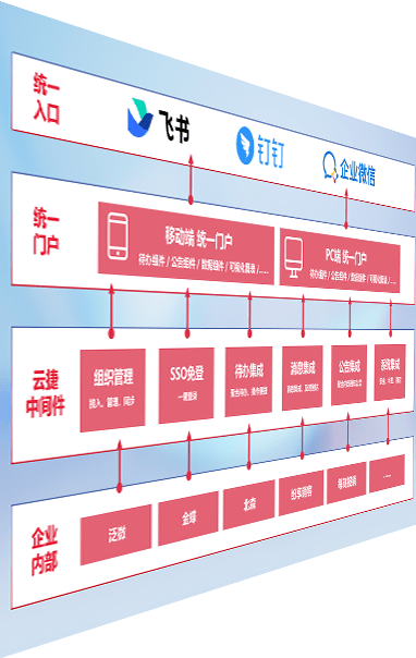 对协作平台提供支持服务,,支持企业应用与协作平台对接,,,包含组织同步、、、、消息集成、、、待办集成等。。。支持目前主流的协作平台:钉钉、、、、企微和飞书。。。。